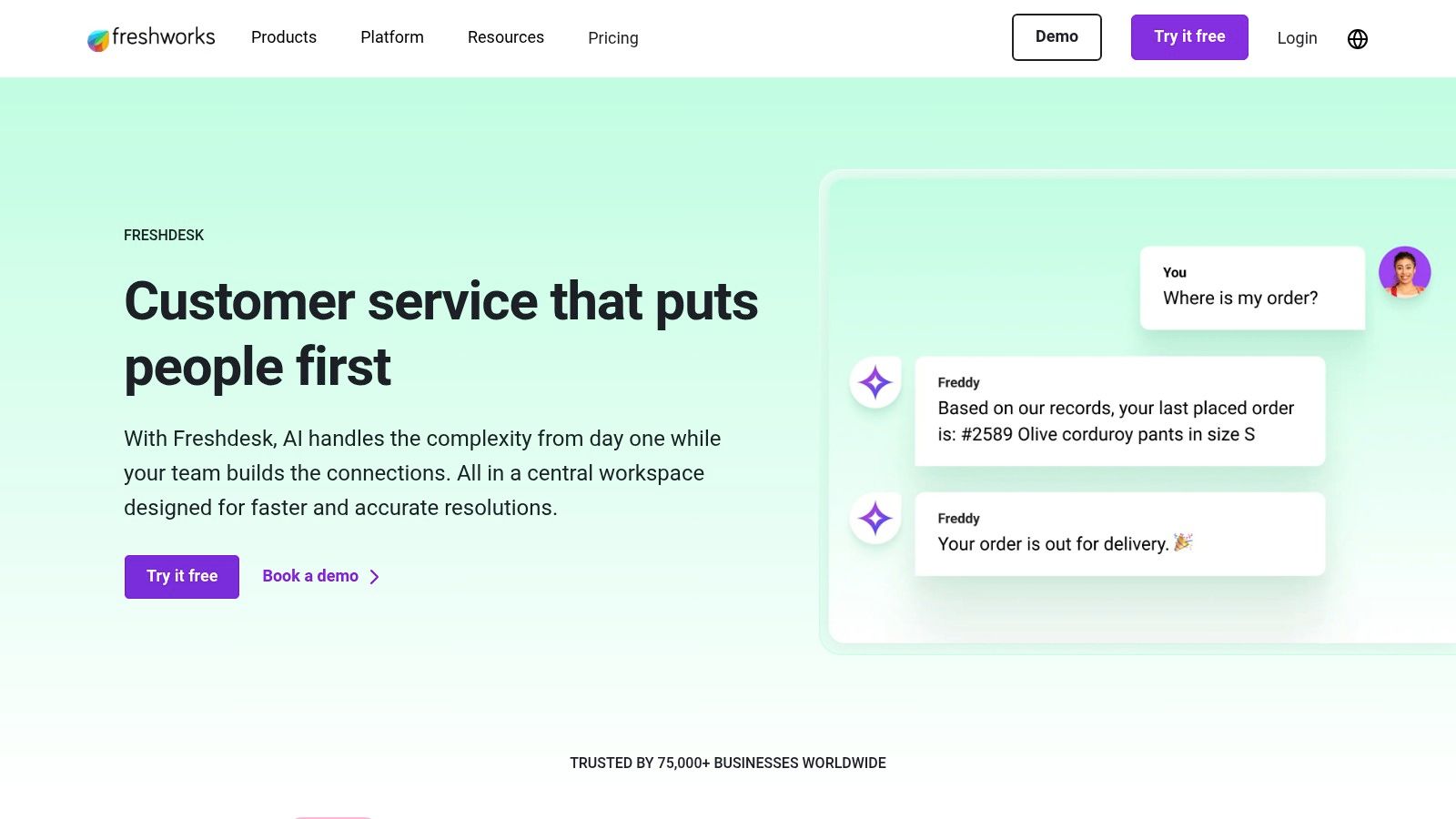What sets Freshdesk apart is its focus on ready-to-use workflows and transparent pricing. Teams can get started quickly without extensive configuration, and the published AI quotas on its pricing plans make it easy to predict costs. This approach makes Freshdesk one of the more straightforward ai customer support tools for teams that need to implement a solution without a lengthy sales and onboarding process.
