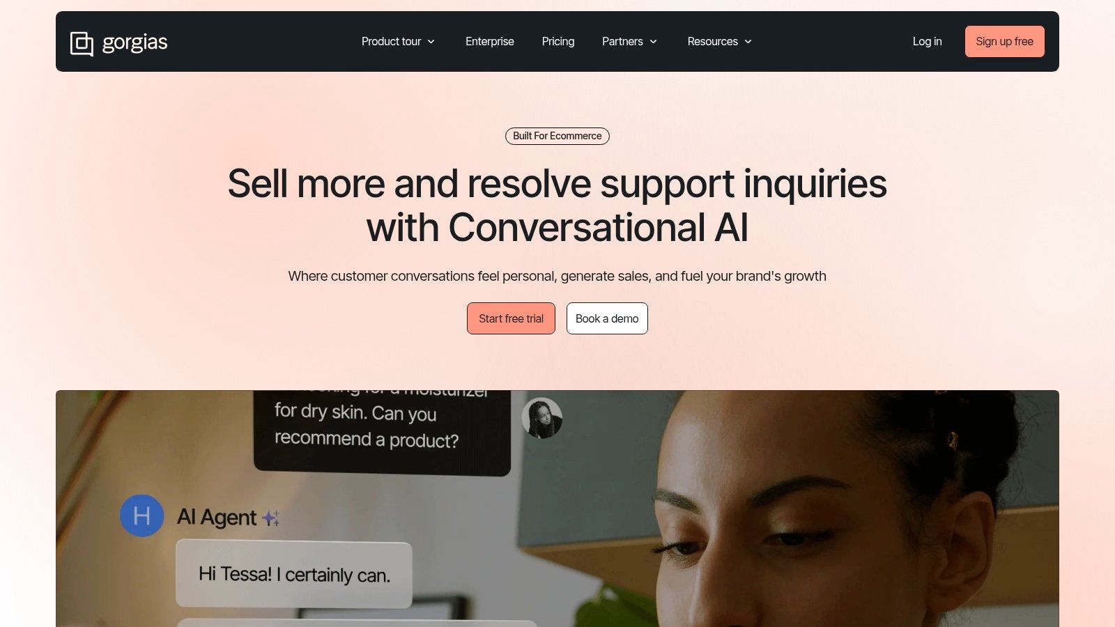Unlike general-purpose platforms, Gorgias offers deep integrations with ecommerce apps like Recharge, Loop, and Yotpo, allowing agents to see customer data and take action without leaving the help desk. Its pricing model, which includes unlimited users on all plans and offers AI resolutions as an add-on, is designed to scale with a store’s revenue and conversation volume. This makes it one of the most practical ai customer support tools for growing ecommerce brands.