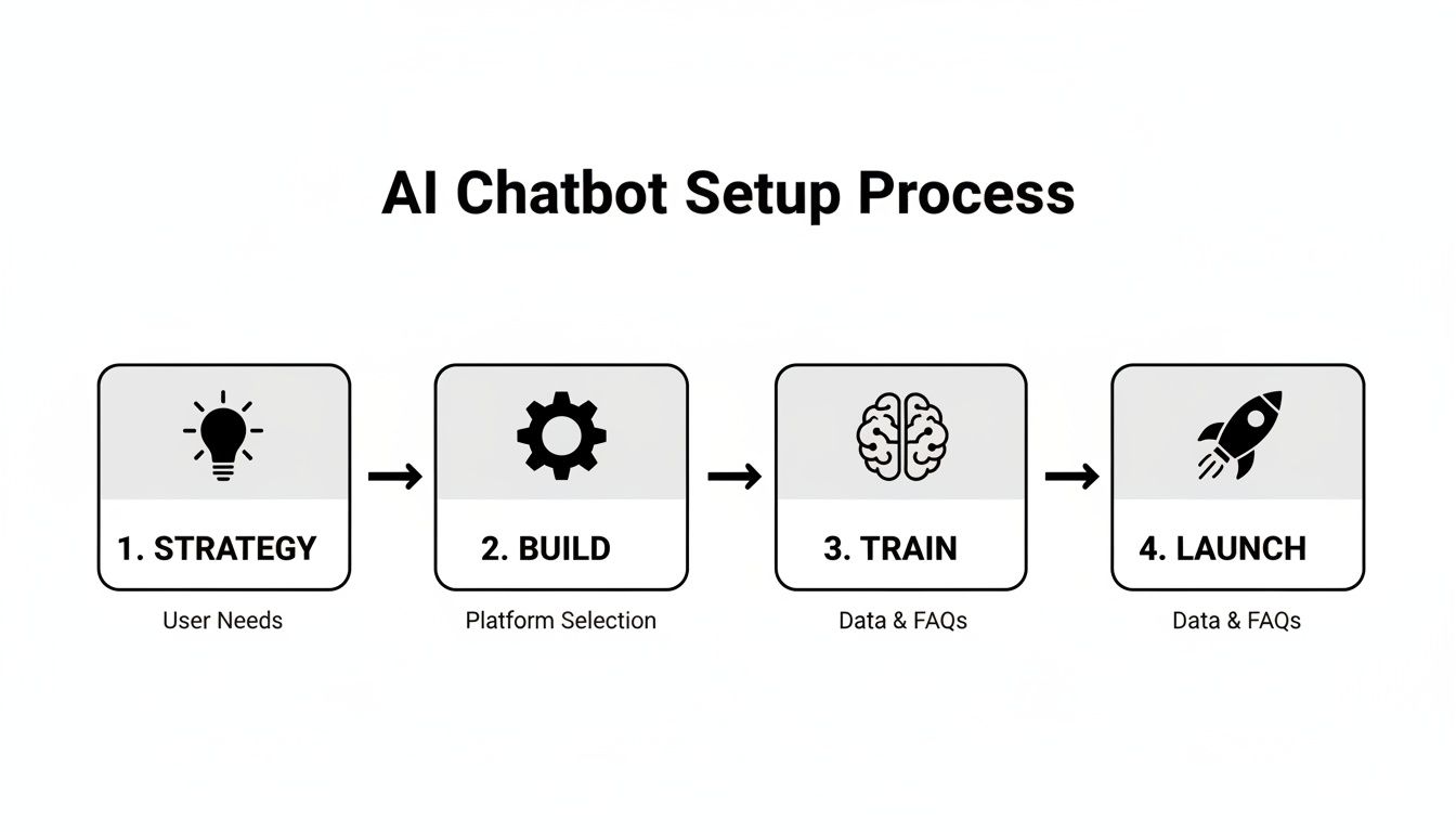 Rolling out an AI chatbot for customer support doesn’t have to be a massive, months-long headache. With the right game plan, you can get a powerful assistant up and running fast. This playbook breaks it all down into four clear phases, taking you from the initial idea to a fully tuned-up launch.