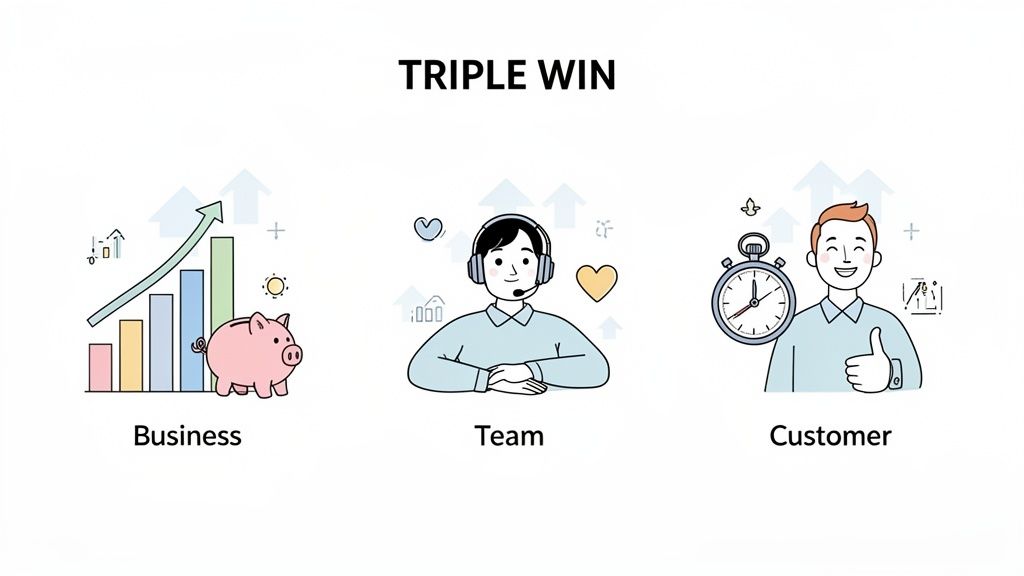 This means digging into the data that shows how automating customer service is really impacting your team’s workload, your operational costs, and your customers’ happiness. Without the right numbers, you’re just guessing.
