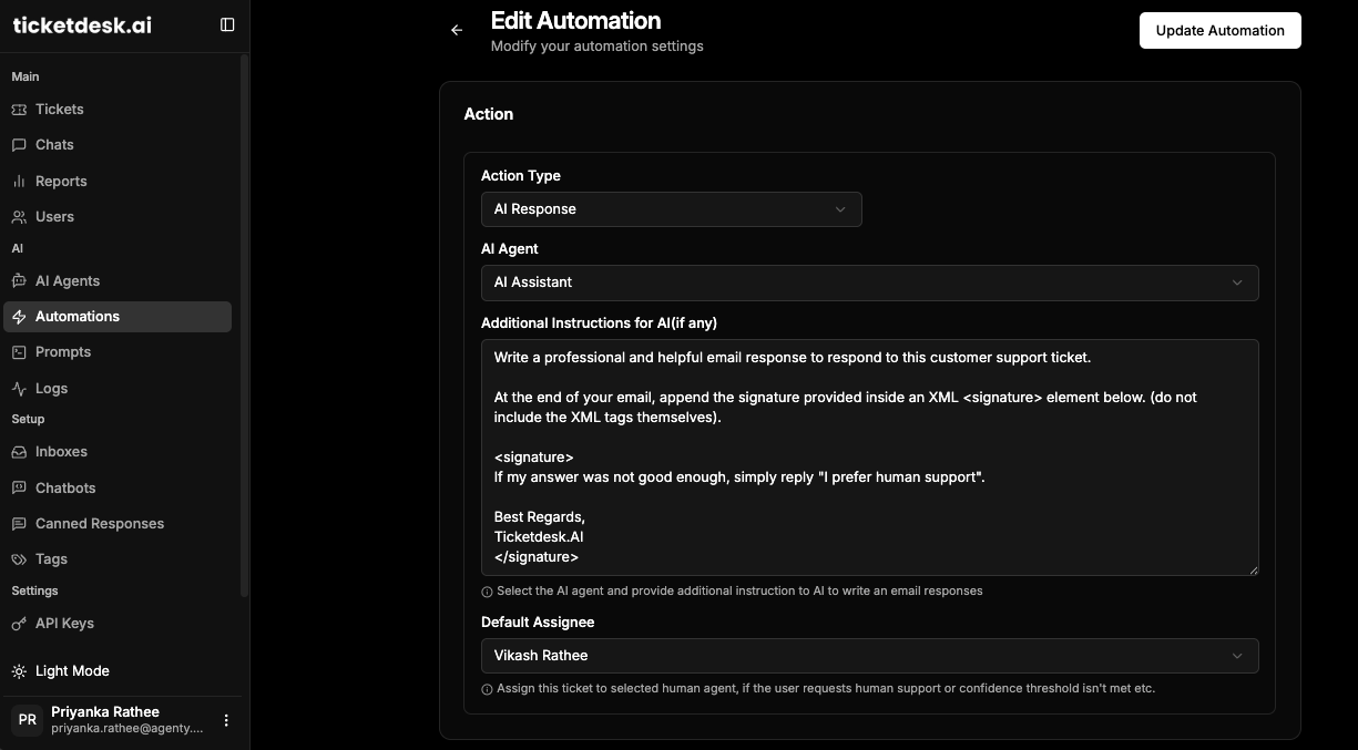 This balanced approach gives you the speed of automation without losing the human touch where it matters most. For a deeper look, our guide on how to automate ticket responses with AI walks through setting up these exact kinds of workflows.